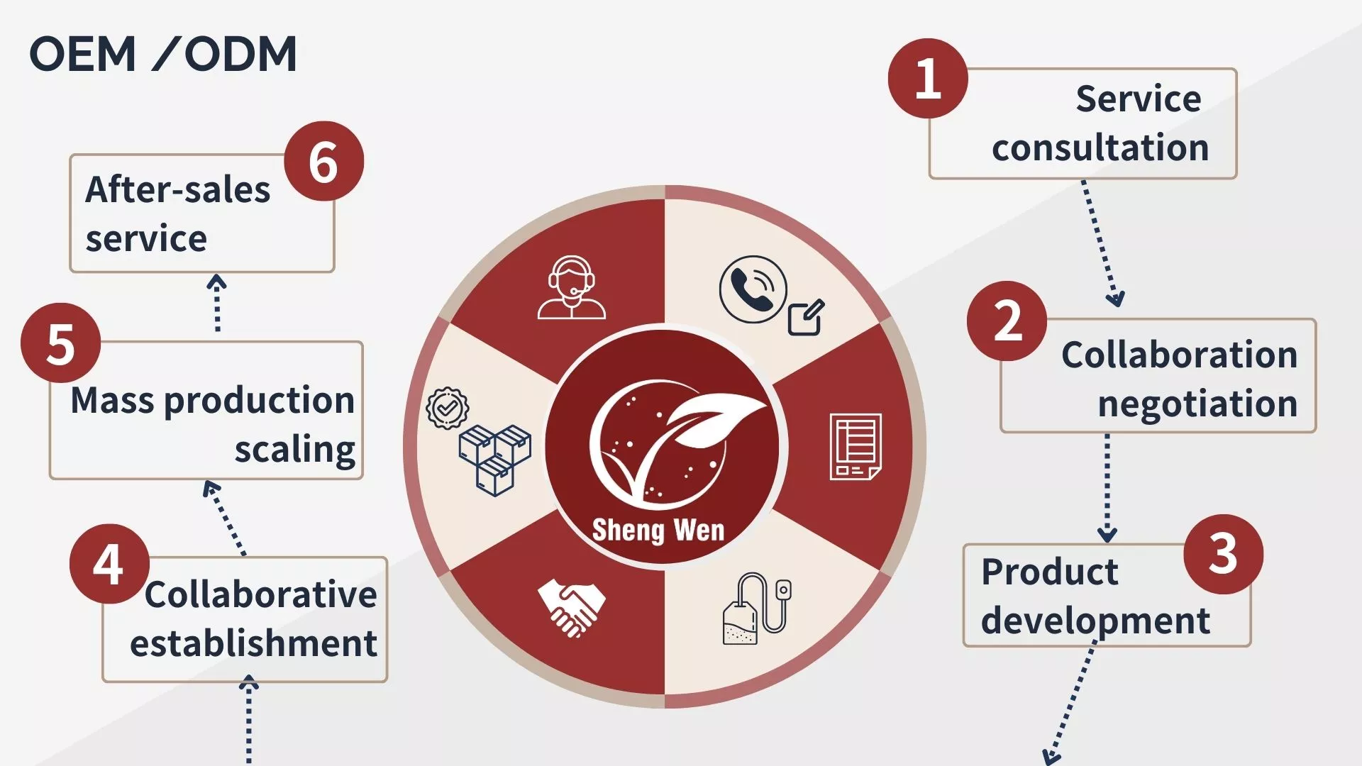 We have a strong capacity for importing and trading a large quantity of raw materials. With high mastery of raw materials, we have complete control over the entire process from "development" to "production." Our OEM product range includes customized options such as "tea bags," "herbal ingredient packs," "traditional Chinese herbal food," and "raw material packaging." We have high production capacity and maintain stable exports.