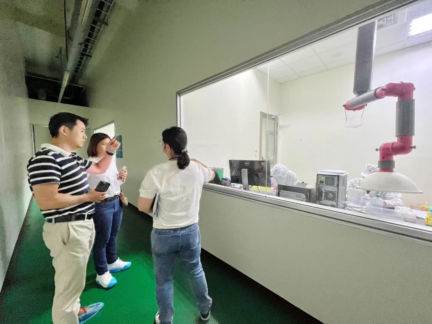 接著,與廠長一同至製藥廠實驗室了解檢驗設備、檢驗流程及了解食品安全觀念。 -