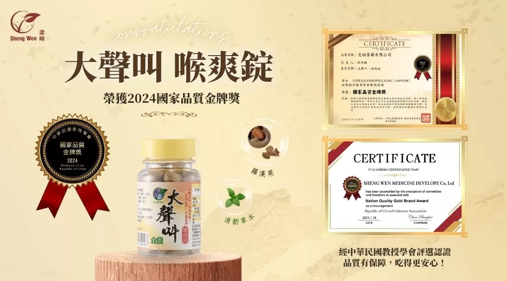 新的一年帶來好消息.ᐟ.ᐟ🤗 恭喜「大聲叫喉爽錠」通過中華民國教授學會評選,榮獲國家品質金牌獎🎉🎉 【大聲叫 喉爽錠】 添加羅漢果、大海子、陳皮、烏梅、甘草、薄荷...等複方清涼草本;滋潤喉嚨,讓您盡情大聲喊叫,大聲唱都沒問題! 教授評語:創辦人遵循傳統漢方藥典之君臣佐使原則,深入研究每種藥材特性,原料以複方草本為基礎並按照漢方比例分配,讓產品產生加乘養生效果,成功協助客戶實現調理身體健康目標,並且獲得大眾客戶喜愛及高度評價,贏得教授評審團得讚譽和肯定。 購買嚐鮮