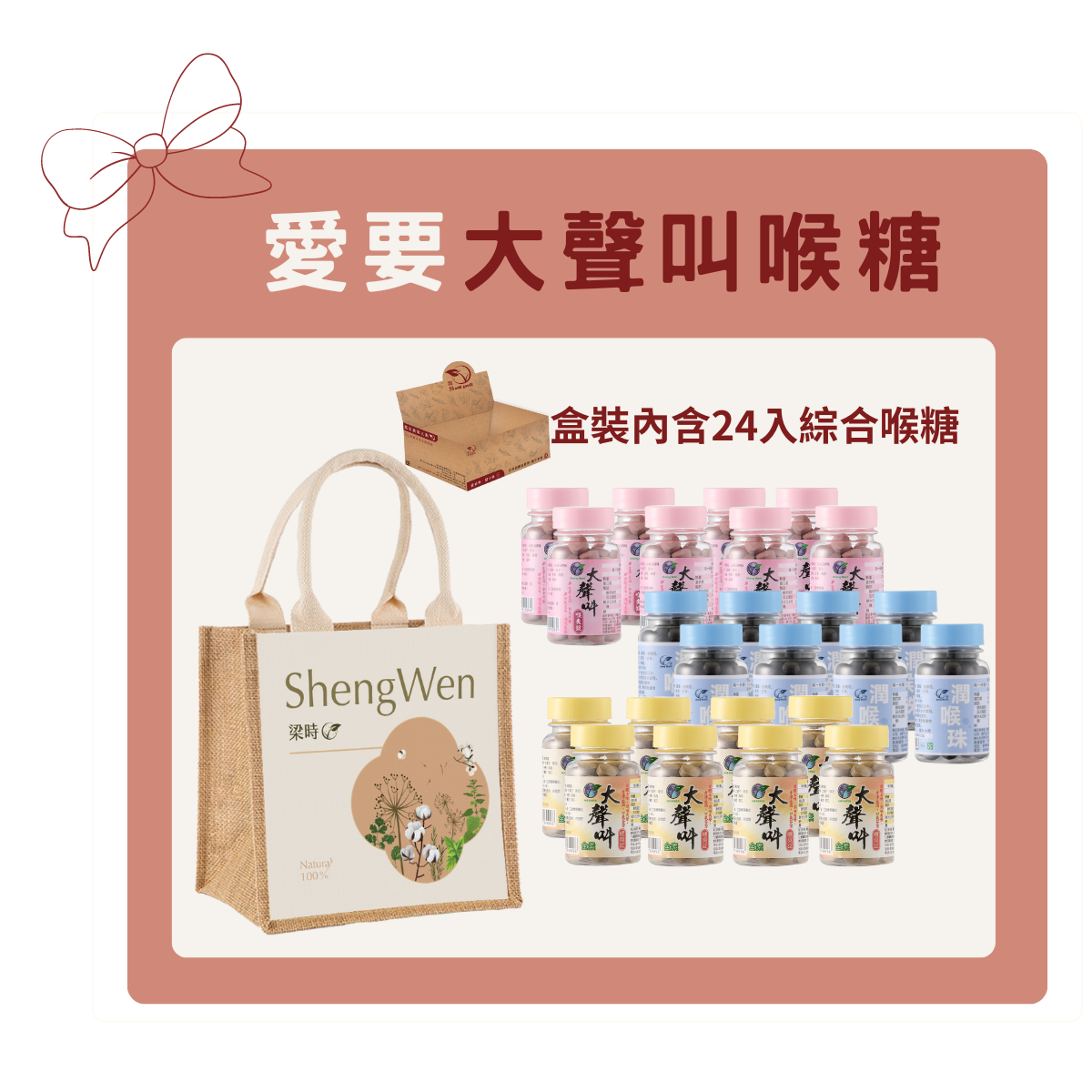 梁時2024母親節禮盒|#現正發售中 #限量優惠5折起 ✨獻給生命中最重要的女人,共三款限定禮袋組 (期間限定販售至2024/05/09,數量有限售完為止) 【美麗循環愛媽咪】 •有機黑豆國寶茶(4g*10入) •鳳梨酵素16益菌果凍(20g*20入) •品牌帆布禮袋一只 給最愛的媽咪最漂亮的美麗循環 【富貴養顏寵媽咪】 •可不渴洛神花茶(4g*10入) •葡萄果酸大補鐵機能果凍(20g*20入) •蜂蜜金盞花葉黃素機能果凍(20g*20入) •品牌帆布禮袋一只 最寵媽咪的奢華富貴養顏組 【愛要大聲叫喉糖】 •大聲叫喉爽錠(30g*8罐) •大聲叫仙楂錠(30g*8罐0) •舒暢潤喉珠(30g*8罐) •品牌帆布禮袋一只 愛要大聲叫出來