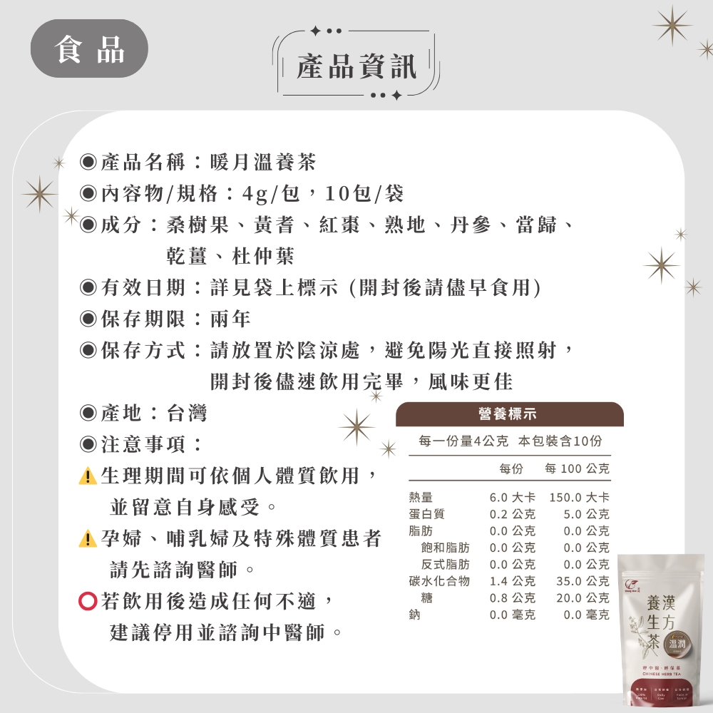| 產品名稱 | 暖月溫養茶 |
