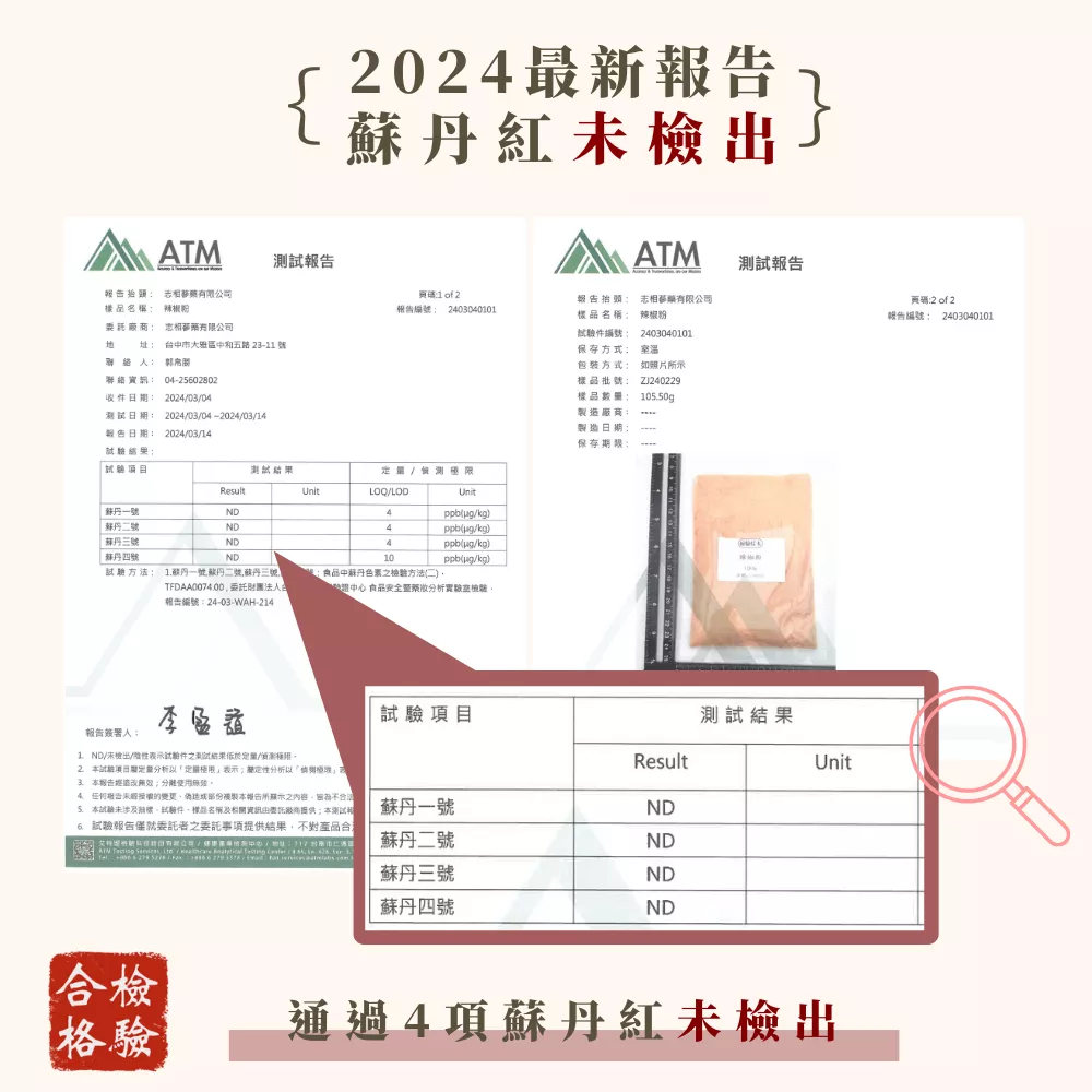 - ◾經過台灣第三方檢測蘇丹紅未檢出與農藥無殘留
